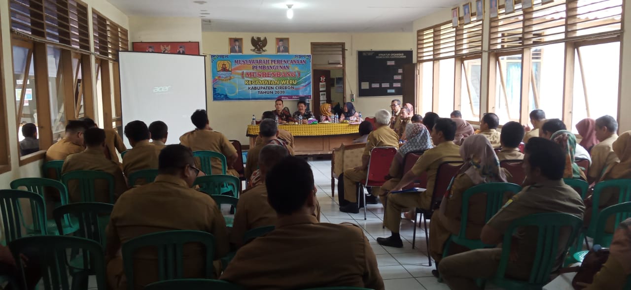 WERU, SC- Pemerintah Kecamatan Weru, Kabupaten Cirebon menggelar Musrenbang di aula kantor kecamatan, Selasa (11/2). Kegiatan dihadiri oleh unsur muspika, para kuwu, anggota dewan, dan tamu undangan lainnya.
