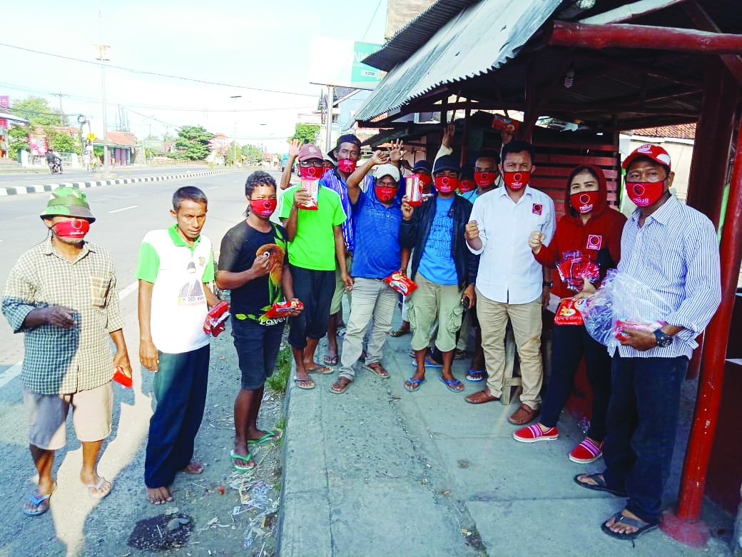 Dari pantauan Suara Cirebon, DPC Projo Kabupaten Cirebon membagikan makanan dan masker kepada para tukang becak maupun ojek juga di beberapa tempat. Kegiatan tersebut tentu saja mendapat sambutan yang begitu atusias dari masyarakat. (Kirno)
