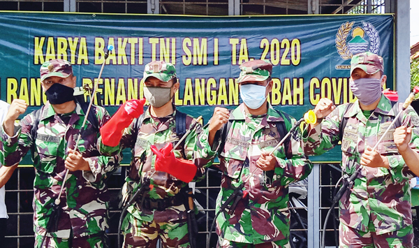 Danramil, Akya mengatakan, selain penyemprotan, pihaknya juga melakukan pembagian masker kepada sejumlah masyarakat. Untuk melaksanakan kegiatan tersebut, lanjut dia, tentunya dengan menggandeng pemerintah desa setempat yang menjadi sasaran kegiatan.