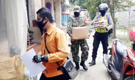 MAJALENGKA, SC- Pendistribusian Bantuan Sosial (Bansos) dari Provinsi Jawa Barat terkait Covid-19 di wilayah Kabupaten Majalengka dikawal jajaran anggota Bhabinkamtibmas Polsek Polres Majalengka bersinergi dengan Babinsa Koramil Kodim 0617/Majalengka. Bhabinkamtibmas Polsek Jatiwangi Polres Majalengka, Triaz Januariz, bersama Babinsa Koramil Jatiwangi, Sertu Tinton, ikut secara langsung mengawal pendistribusian bantuan sosial kepada warga masyarakat yang terdampak virus Covid-19 di Kecamatan Jatiwangi Kabupaten Majalengka, Selasa (28/4/2020).