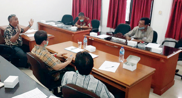 RAPAT Kerja Komisi II mengenai Pengelolaan PAD dari BUMD di ruang Komisi II DPRD Kabupaten Cirebon, Jumat (7/8/2020).* Foto: Islah