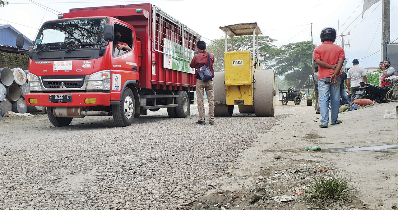 “Kita di sini berinisiatif dengan sekeliling perusahaan ini untuk memberesi jalan di sekitar kita. Istilahnya ada patungan ada sumbangan dari pabrik-pabrik untuk alokasi pembangunan ini,” kata Imah.