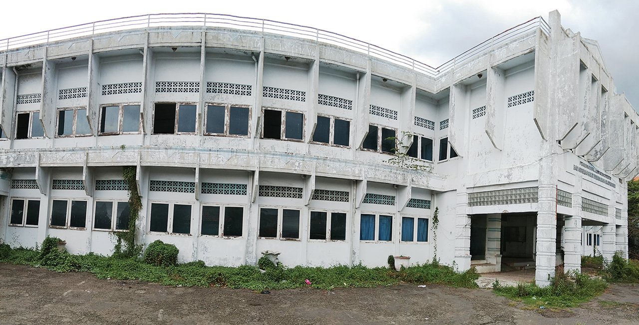 Gedung eks RSUD Arjawinangun yang akan diperbaiki untuk dijadikan tempat isolasi mandiri pasien Covid-19 yang jumlahnya terus meningkat setiap harinya.* Foto: Islah/Suara Cirebon