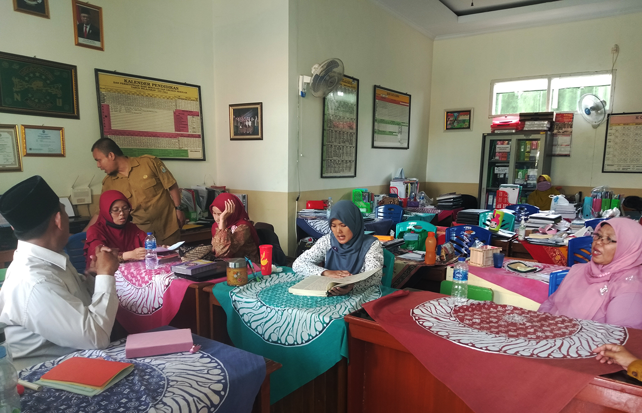 Muhammad Faizudin saat membina beberapa guru madrasah tentang metode qiroati di MI Ma'arif Sutawinangun, Kedawung, Kabupaten Cirebon.* Foto: Yusuf/Suara Cirebon