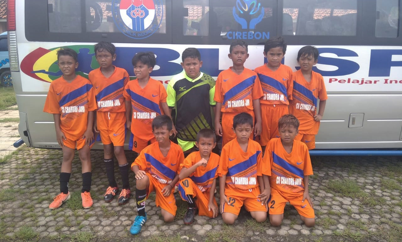 SEJUMLAH SISWA SSB CJ Sentra Desa Megu Cilik, Kecamatan Weru, Kabupaten Cirebon dengan kostum orange ketika foto bersama dalam suatu mumen, beberapa waktu lalu.* Foto: Narsita/Suara Cirebon