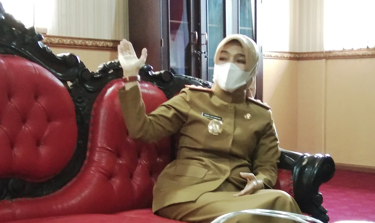 Wakil Bupati Cirebon, Hj Wahyu Tjiptaningsih saat memberi keterangan kepada sejumlah awak media di ruang kerja Bupati, Senin (15/2/2021).* Foto: Islah/Suara Cirebon
