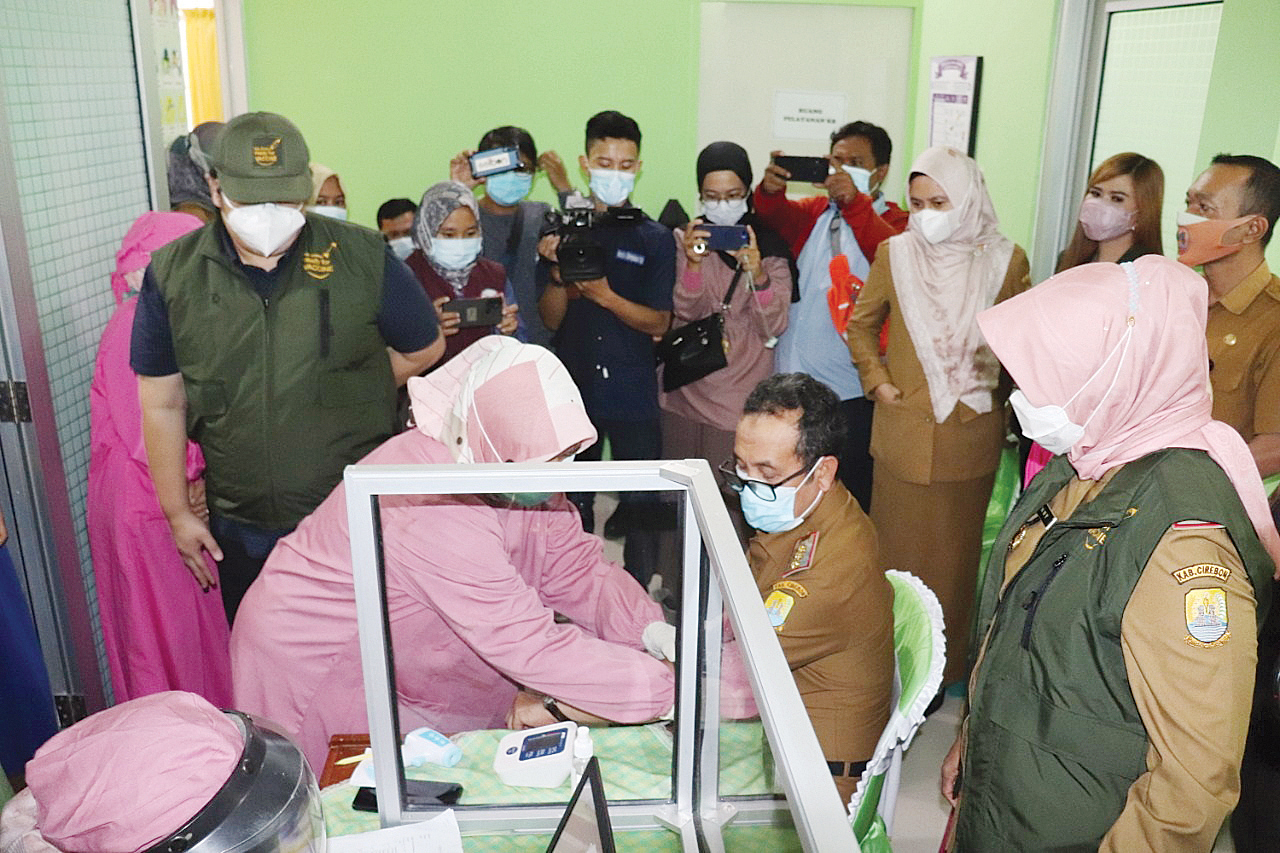 KABUPATEN CIREBON, SC- Dinas Kesehatan (Dinkes) Kabupaten Cirebon melaksanakan vaksinasi Covid-19 tahap II yang merupakan pemberian dosis kedua bagi ribuan tenaga kesehatan (nakes) dan Forkopimda serta tokoh masyarakat, Senin (15/2/2021).