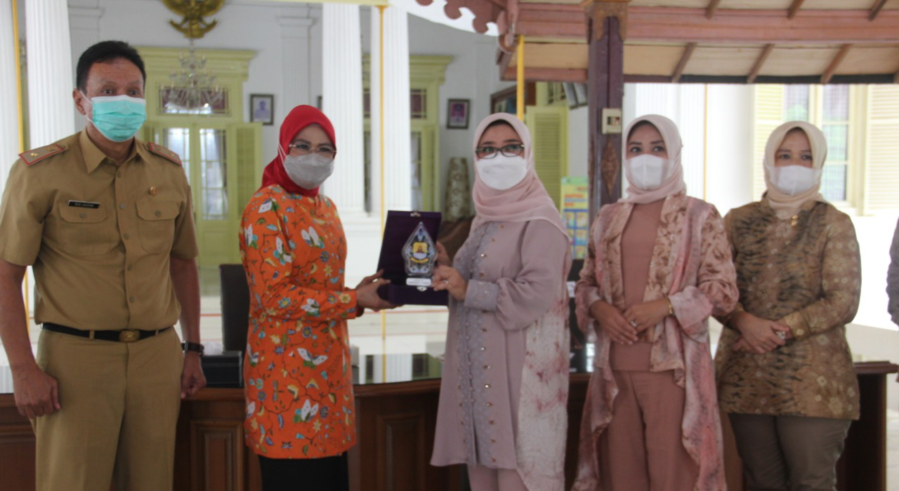 KABUPATEN CIREBON, SC- Dewan Kerajinan Nasional Daerah (Dekranasda) Kabupaten Cirebon, menerima kunjungan Dekranasda Kota Prabumulih Sumatra Selatan. Kunjungan tersebut diterima langsung Ketua Dekranasda Kabupaten Cirebon, Hj Nunung Roosmini di Pendopo Bupati Cirebon Jalan Kartini Kota Cirebon, Senin (15/2/2021).