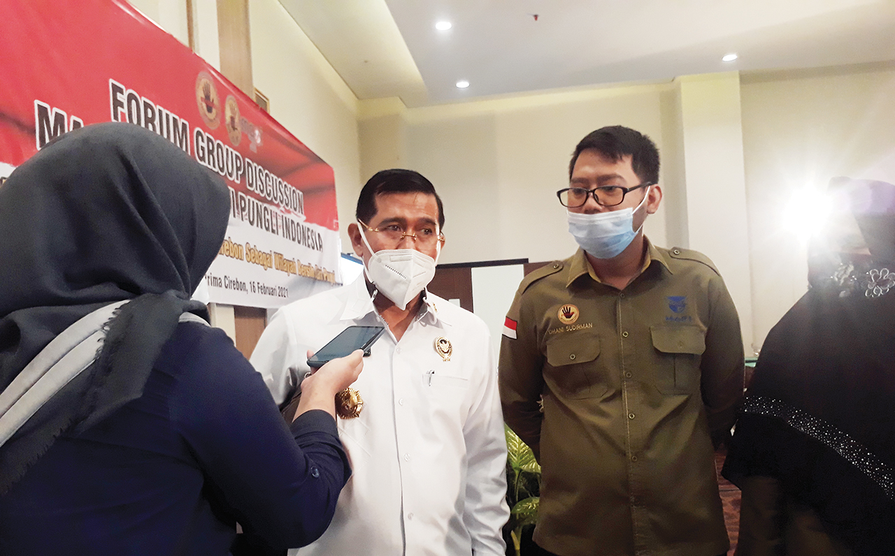 Sekretaris Satgas Saber Pungli, Irjen Pol Agung Makbul (kiri), saat menghadiri Forum Group Discussion Masyarakat Anti Pungli Indonesia di Kota Cirebon, Selasa (16/2/2021).* Foto: Hanif/Suara Cirebon