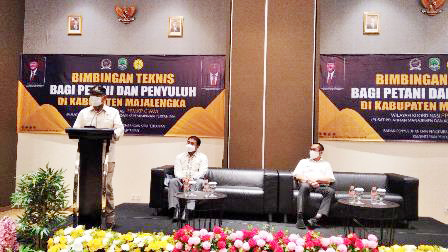 ANGGOTA KOMISI IV DPR RI H. Sutrisno membuka kegiatan bimbingan teknis bagi petani dan penyuluh Kabupaten Majalengka.* Foto: Dins/Suara Cirebon