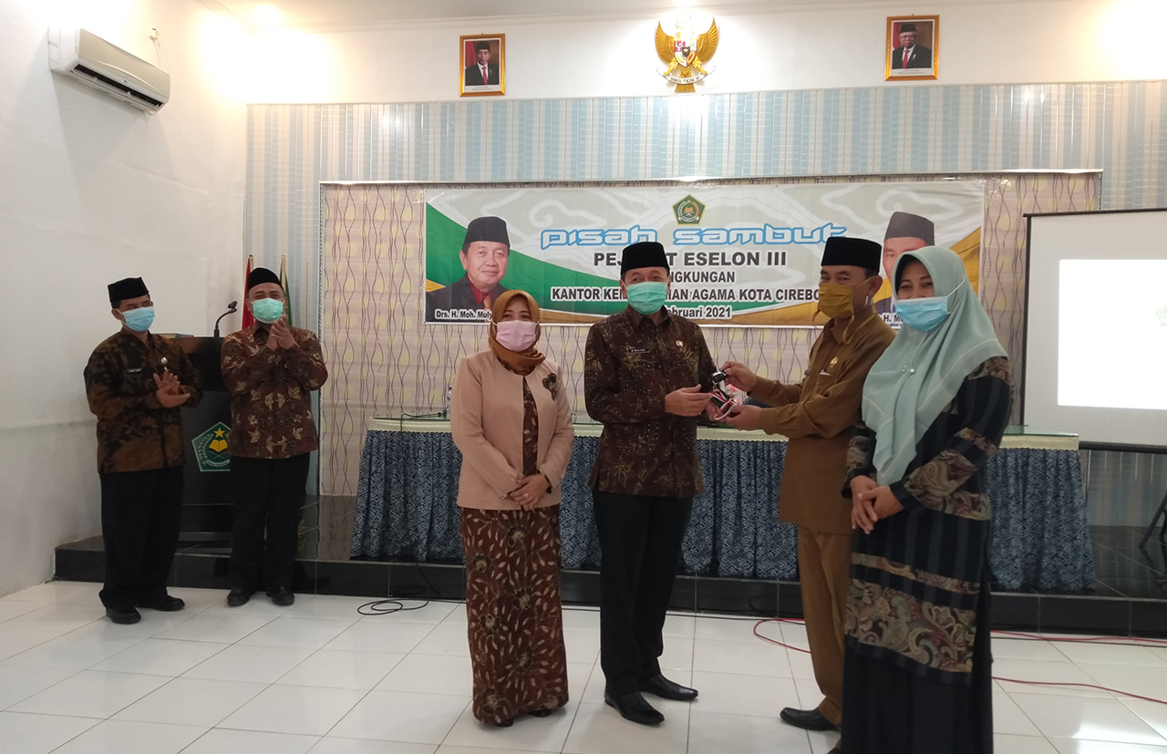 KOTA CIREBON, SC- Kantor Kementerian Agama (Kemenag) Kota Cirebon melakukan pisah sambut pejabat eselon III di aula pertemuan kantor setempat, Selasa (23/2/2021). Kegiatan rotasi pejabat eselon III tersebut berlangsung dengan khidmat yang turut dihadiri oleh jajaran pengurus Kemenag Kota Cirebon, Kemenag Kabupaten Indramayu, Kemenag Kabupaten Majalengka, Dharma Wanita Kemenag Kota Cirebon, dan pihak lainnya.