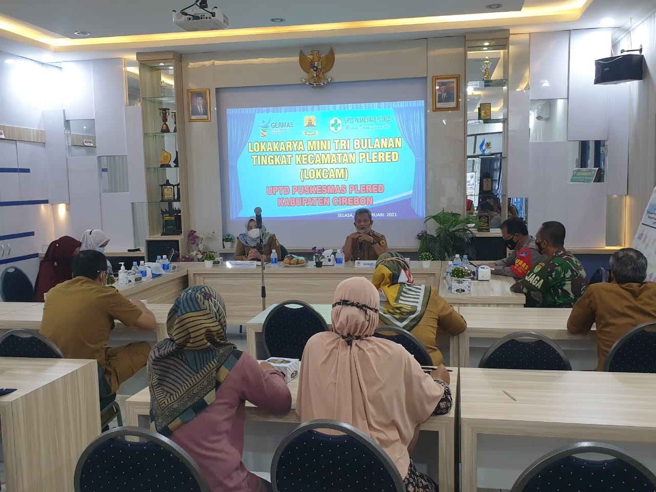 KABUPATEN CIREBON, SC- UPT Puskesmas Plered, Kabupaten Cirebon mengadakan lokakarya mini tri bulanan tingkat Kecamatan Plered, Selasa (23/2/2021). Hadir dalam kesempatan tersebut, Camat Plered Hardomo, Kapolsek Plered, Danramil, para kuwu binaan Puskesmas Plered dan tamu undangan lainnya.