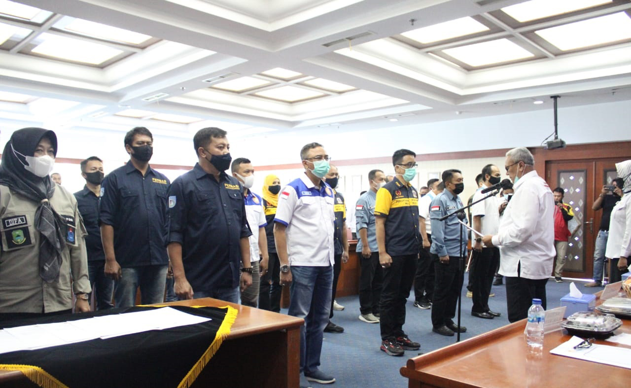 KUNINGAN, SC- Bupati Kuningan H. Acep Purnama menghadiri rapat Komite Olah Raga Indonesia (KONI) Kabupaten Kuningan sekaligus melantik pengurus 7 cabang olahraga di Aula Bank Jabar Banten Cabang Kuningan, Rabu (24/2/2021).