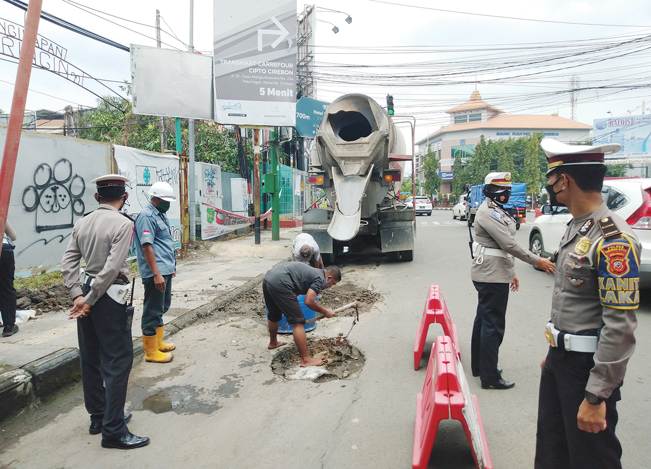 “Nanti sambil berjalan, mana yang ditemukan lubangnya besar maka akan kami tutup sementara memakai beton. Kegiatan ini rencananya secara terus menerus, sambil berjalan, baik di jalan protokol maupun jalan lain di kawasan tertib lalulintas Polres Cirebon Kota,” katanya.