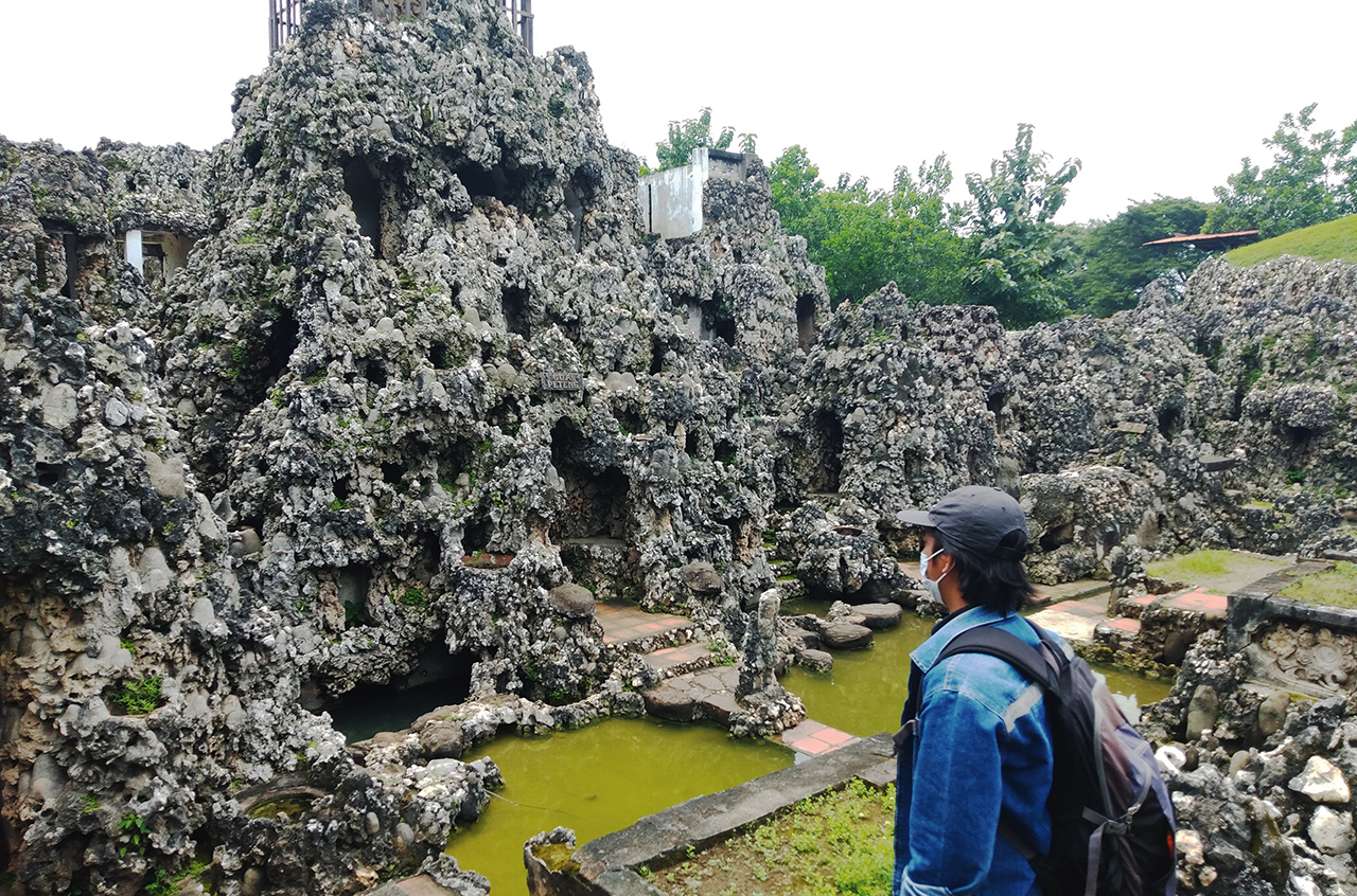 Seorang wisatawan mengamati objek wisata Gua Sunyaragi yang bersejarah dan tergolong unik.* Foto: Yusuf/Suara Cirebon