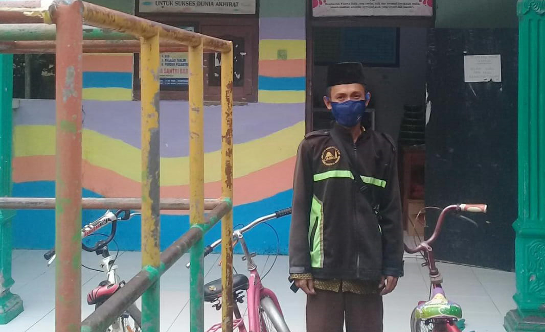 KEPALA DTA Al Ishlah Blok Sungapan Lor, Desa Megu Gede, Kecamatan Weru, Kabupaten Cirebon, Sochibi saat berpose di depan DTA setempat.* Foto: Rachman/Suara Cirebon