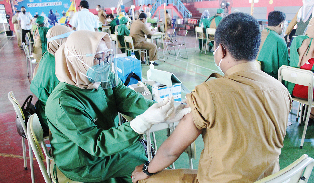 “Vaksinasi ini program nasional yang sangat penting untuk menyelamatkan rakyat, membentengi masyarakat kita dari kemungkinan penularan Covid-19 yang cukup ganas itu,” ujar Agung.