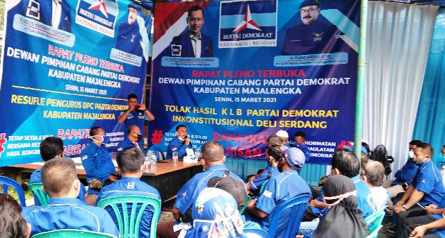 DPC PARTAI Demokrat Majalengka menggelar rapat pleno terbuka menolak KLB Deli Serdang.* Foto: Dins/Suara Cirebon