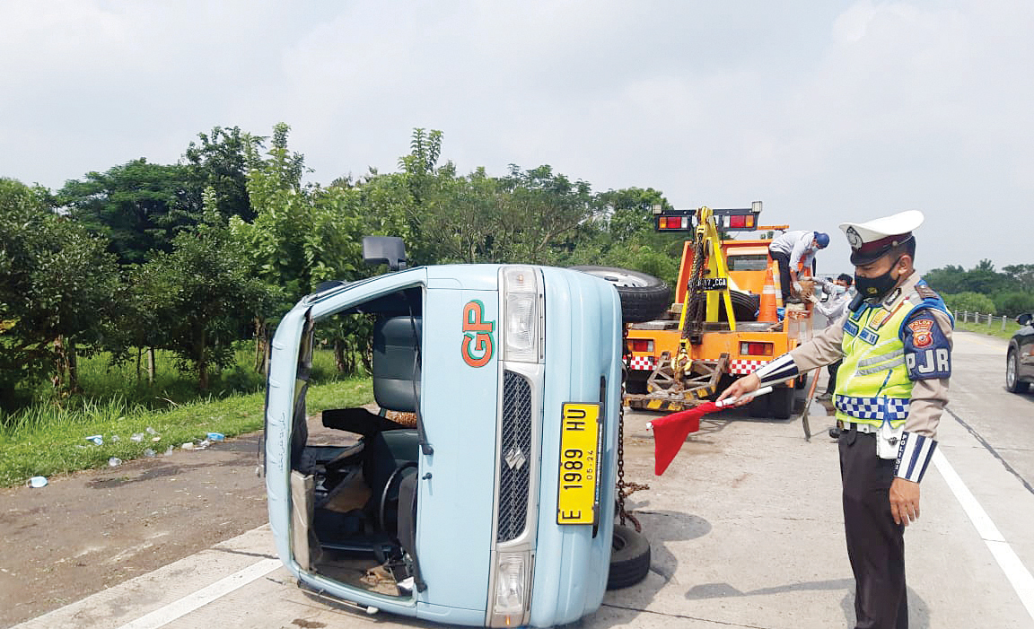 MAJALENGKA, SC– Tiga orang terluka berat dan empat orang lainnya mengalami luka ringan, saat sebuah angkutan kota (Angkot) Gunung Sari-Plered (GP) sarat penumpang, mengalami kecelakaan di ruas Tol Cikopo-Palimanan (Cipali).