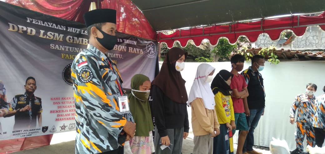 KABUPATEN CIREBON, SC- Dalam rangka Hari Ulang Tahun (HUT)  ke-19 LSM GMBI, DPD LSM GMBI Distrik Cirebon Raya menggelar kegiatan bakti sosial yang bertempat di kantor sekretariat DPD GMBI Distrik Cirebon Raya, Desa Sitiwinangun, Kecamatan Jamblang, Kabupaten Cirebon.