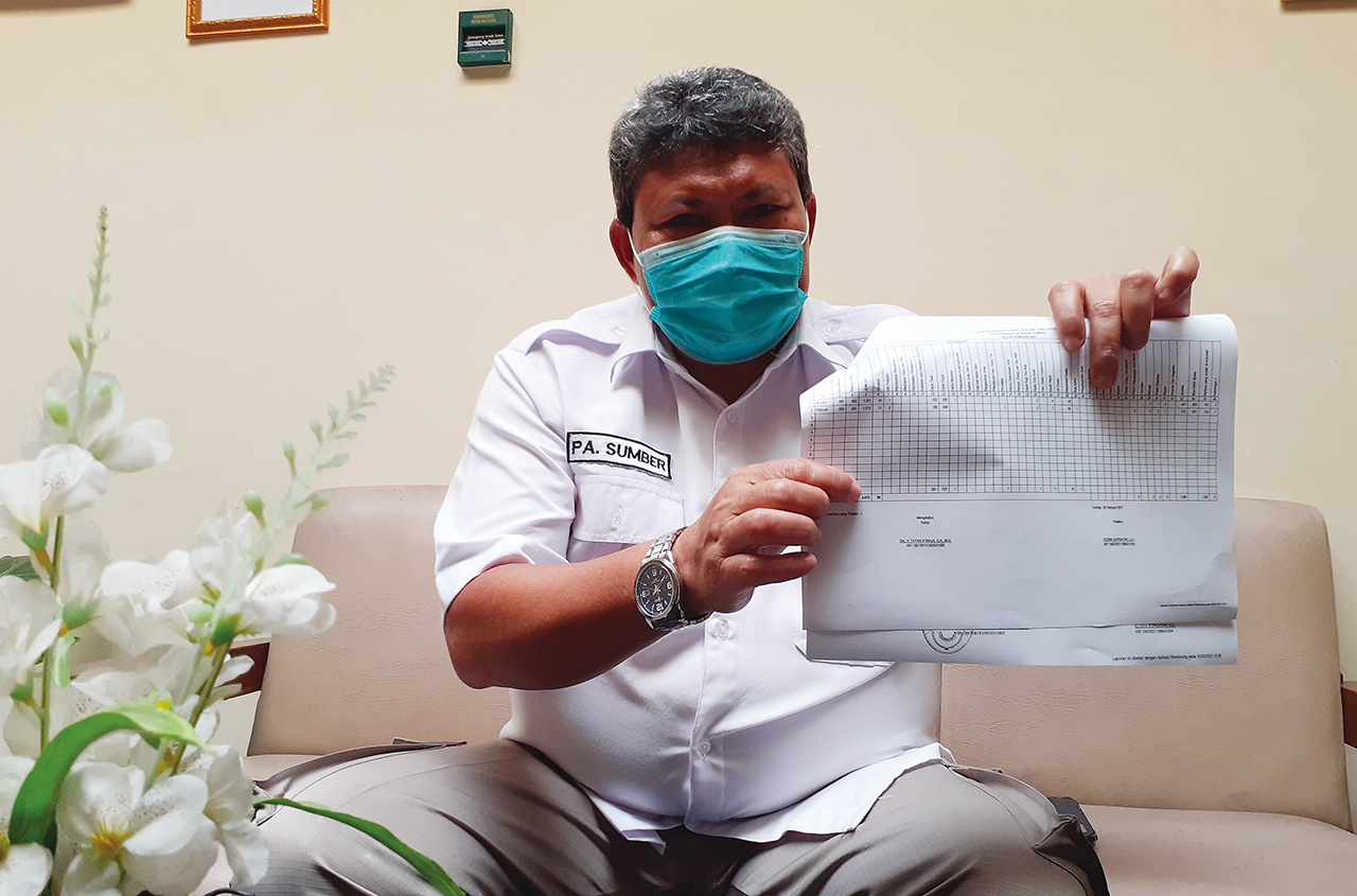 Humas Pengadilan Agama (PA) Kelas I Sumber Kabupaten Cirebon, H Abdul Aziz menunjukkan data ASN yang mengajukan proses perceraian, Kamis (25/3/2021).* Foto: Joni/Suara Cirebon