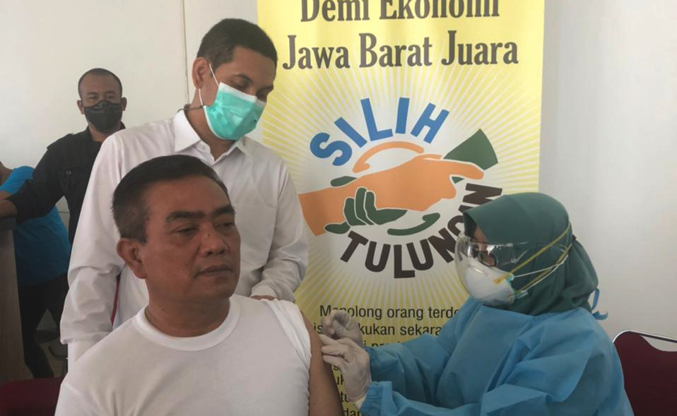 KOTA CIREBON, SC- Wali Kota Cirebon Nashrudin Azis disuntik vaksin Covid-10. Penyuntikan vaksin ini dilakukan setelah tiga bulan ini Azis dinyatakan sembuh dari positif Covid-19.