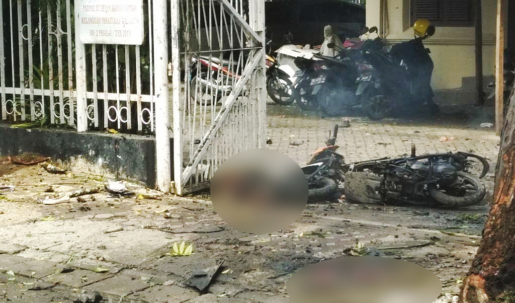 Bom bunuh diri terjadi di depan Gereja Katedral Makassar Jalan Kahaolalido di dekat Lapangan Karebosi Makassar.* Foto: Istimewa