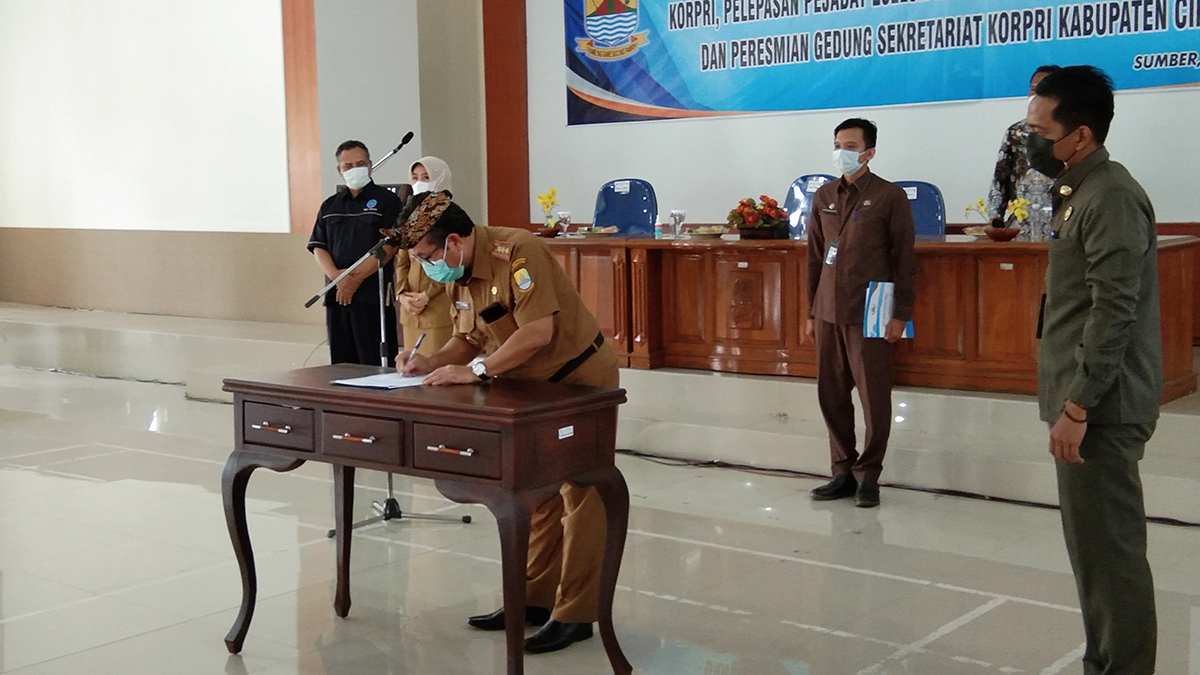 Bupati didampingi Wabup meresmikan sekretariat KORPRI.* Foto: Islah/Suara Cirebon