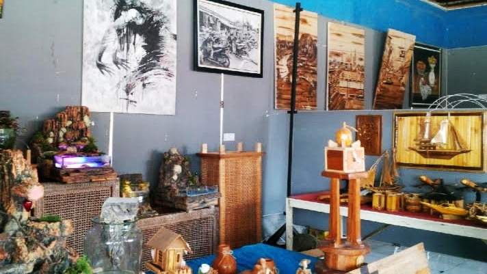 SEJUMLAH KARYA seni seniman Majalengka yang bisa detemukan di Pasar Seni Majalengka.* Foto: Dins/Suara Cirebon