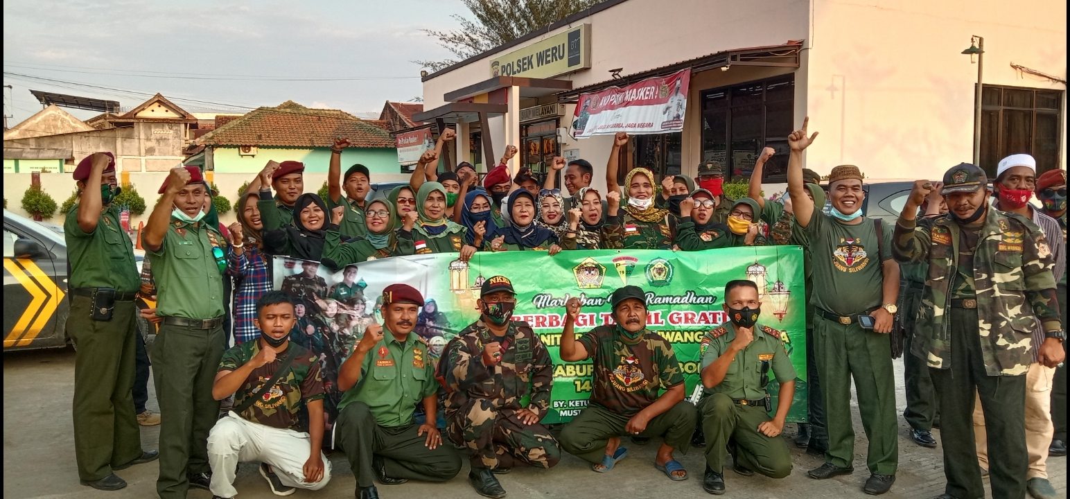 IWAPSI dan Pejuang Siliwangi Indonesia Kabupaten Cirebon foto bersama usai membagikan takjil di sekitar traffic light Weru, Ahad (25/4/2021). (Foto: Arif/Suara Cirebon)