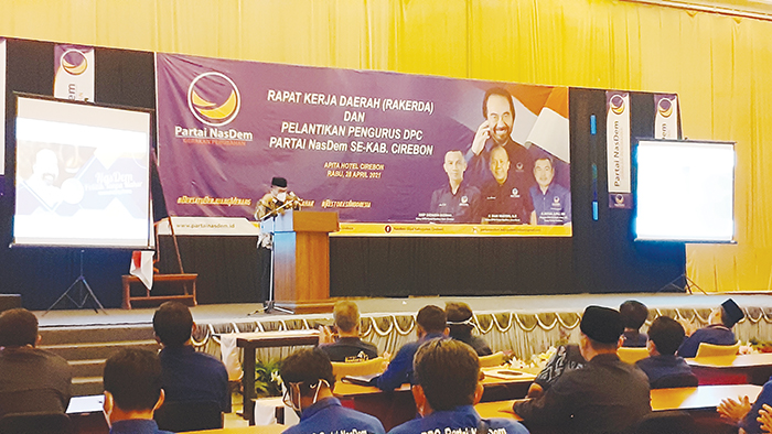 KABUPATEN CIREBON, SC- DPD Partai Nasional Demokrat (NasDem) Kabupaten Cirebon menggelar rapat kerja daerah (Rakerda) dan acara pelantikan DPC Partai NasDem se-Kabupaten Cirebon, di salah satu hotel Jalan Tuparev, Kecamatan Kedawung, Rabu (28/4/2021).