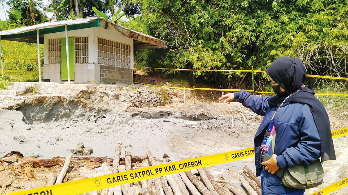 KABUPATEN CIREBON, SC- Lokasi semburan lumpur di Desa Cipanas, Kecamatan Dukupuntang, Kabupaten Cirebon sudah dipasang garis Satpol PP atau Satpol PP line. Garis tersebut dipasang dengan radius yang lebih jauh dari garis yang dipasang sebelumnya oleh Muspika Dukupuntang dan pemdes setempat.