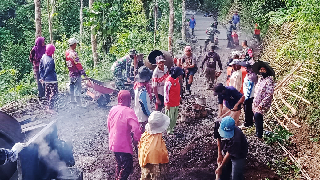 KUNINGAN, SC- Ratusan Warga Desa Jamberama, Kecamatan Selajambe, Kuningan dibantu anggota TNI nampak antusias melakukan kegiatan Pra-TMMD ke-111, sejak beberapa hari lalu berupa pengerjaan fisik.