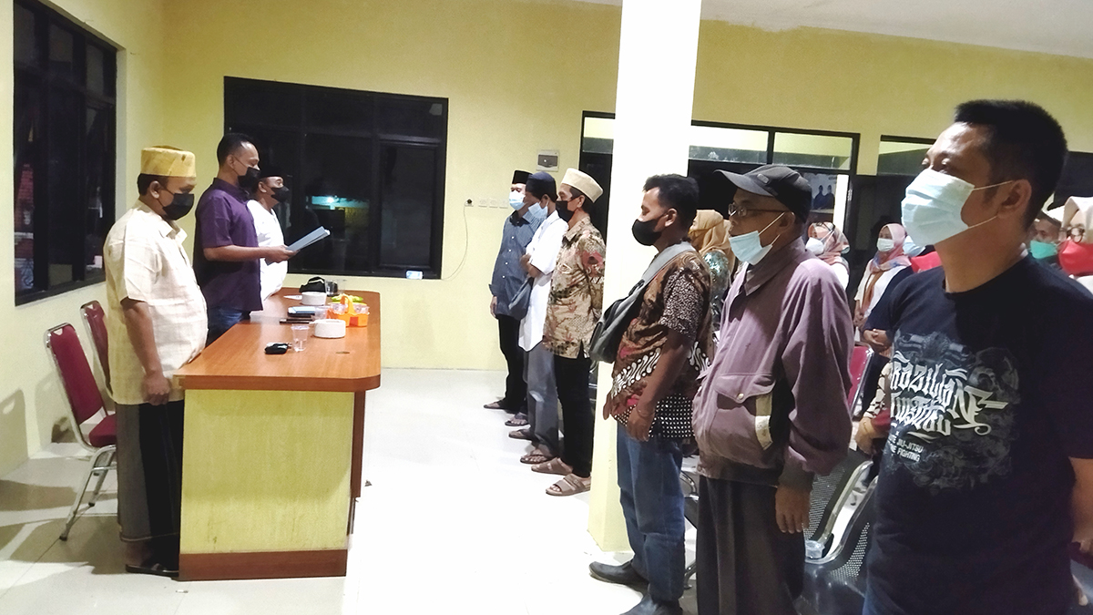 KABUPATEN CIREBON, SC- Desa Kertawinangun, Kecamatan Kedawung , Kabupaten Cirebon, melakukan pengambilan sumpah jabatan ketua RT dan RW terpilih serta Ketua DKM Masjid Darul Ulum untuk masa jabatan tahun 2021-2027, Senin (12/7/2021) malam.