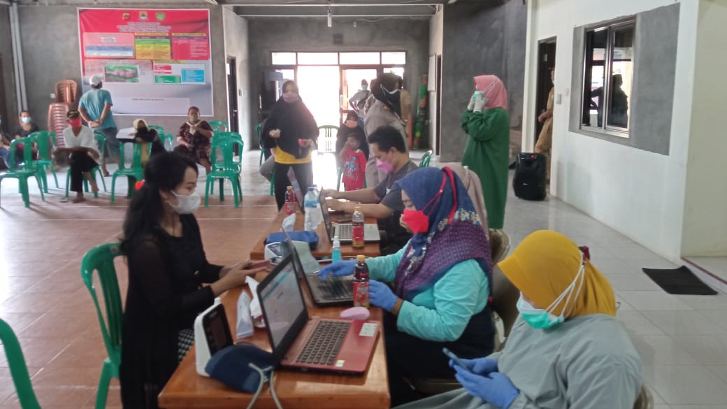 KABUPATEN CIREBON, SC- Masyarakat Desa Cibogo, Kecamatan Waled secara sukarela berdatangan ke kantor Desa Cibogo untuk divaksin, kemarin.