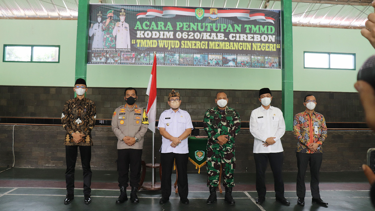 KABUPATEN CIREBON, SC- TMMD Imbangan yang dilaksanakan di Desa Dompyong Kulon, Kecamatan Gebang, Kabupaten Cirebon telah berakhir. Penutupan kegiatan tersebut dilaksanakan di Makodim 0620/Kabupaten Cirebon, Rabu (14/7/2021).
