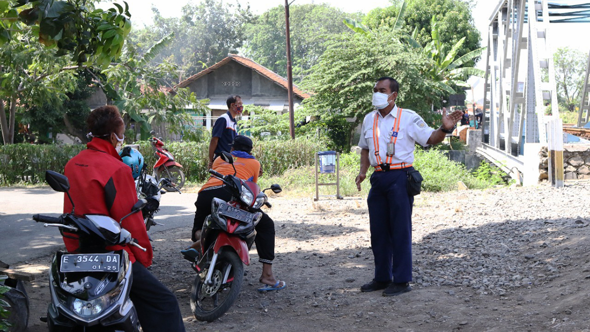 Diketahui perlintasan kereta api yang berada di Km 218 +3 antara Stasiun Cirebon- Stasiun Cangkring, tepatnya di Desa Adidarma, Kecamatan Gunung Jati, Kabupaten Cirebon, menjadi salah satu titik jalan pintas warga dalam menghindari penyekatan dan penutupan akses masuk Kota Cirebon selama PPKM Darurat.