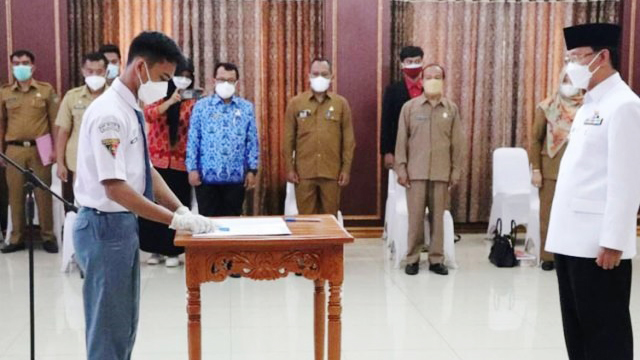 MAJALENGKA, SC- Bupati Majalengka H. Karna Sobahi mengukuhkan perwakilan SMA/SMK/MA/sederajat sebagai Pengurus Forum Pelajar Sadar Hukum masa bhakti 2021-2022.