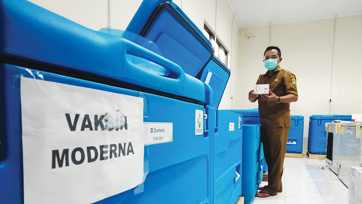 Stok vaksin covid-19 yang tersimpan aman di Gudang Farmasi Dinkes Kabupaten Cirebon.* Foto: Islah/SC