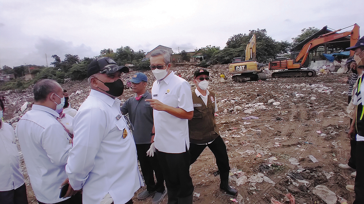 Didampingi Sekda Kota Cirebon, Agus Mulyadi, Dewan Ketahanan RI meninjau TPA Kopiluhur, Harjamukti, terkait penanganan sampah dan lingkungan mengingat ancaman perubahan iklim, Rabu (24/11/2021).* Foto: Surya/SC