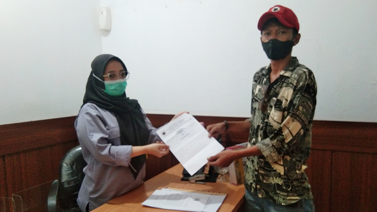 Jubir BMI, Alan F Alamsyah menyerahkan berkas laporan ke Kejaksaan Negeri Kabupaten Cirebon, Senin (29/11/2021).* Foto: Islah/SC