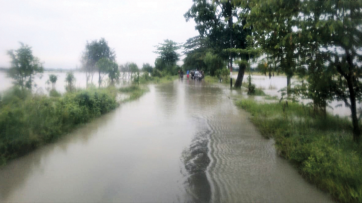 Banjir yang menggenangi salah satu jalan penghubung antardesa di Kabupaten Cirebon akibat cuaca ekstrem, Jumat (3/12/2021).* Islah/SC