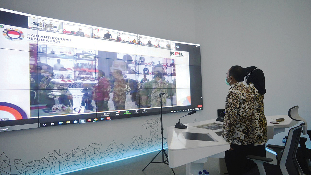 Wakil Bupati Cirebon, Hj Wahyu Tjiptaningsih mengikuti peringatan Hari Anti Korupsi Sedunia (Hakordia) secara virtual di Command Centre, Gedung Setda, Kamis (9/12/2021).* Foto: Istimewa