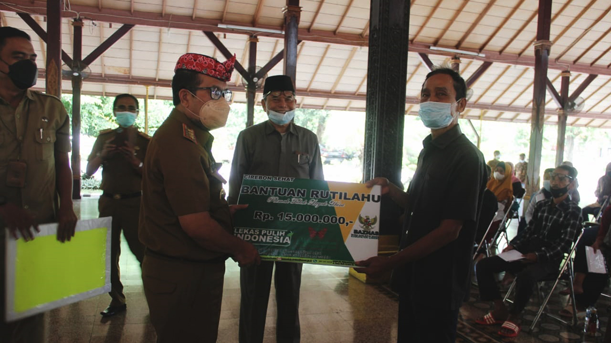 KABUPATEN CIREBON, SC- Pemerintah Kabupaten (Pemkab) Cirebon kembali menerima bantuan dari Badan Amil Zakat Nasional (Baznas) Kabupaten Cirebon. Penyerahan bantuan tersebut dilakukan di Pendopo Bupati Jalan Kartini Kota Cirebon, Senin (13/12/2021).