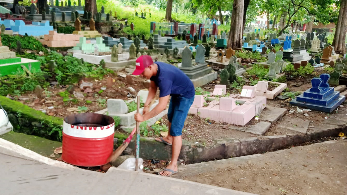 Selain mengadakan bak sampah, pemuda pemudi wisata religi makam keramat Syekh Dzatul Kahfi Gunung Jati juga melakukan bersih-bersih di lokasi wisata religi tersebut. (Vicky)