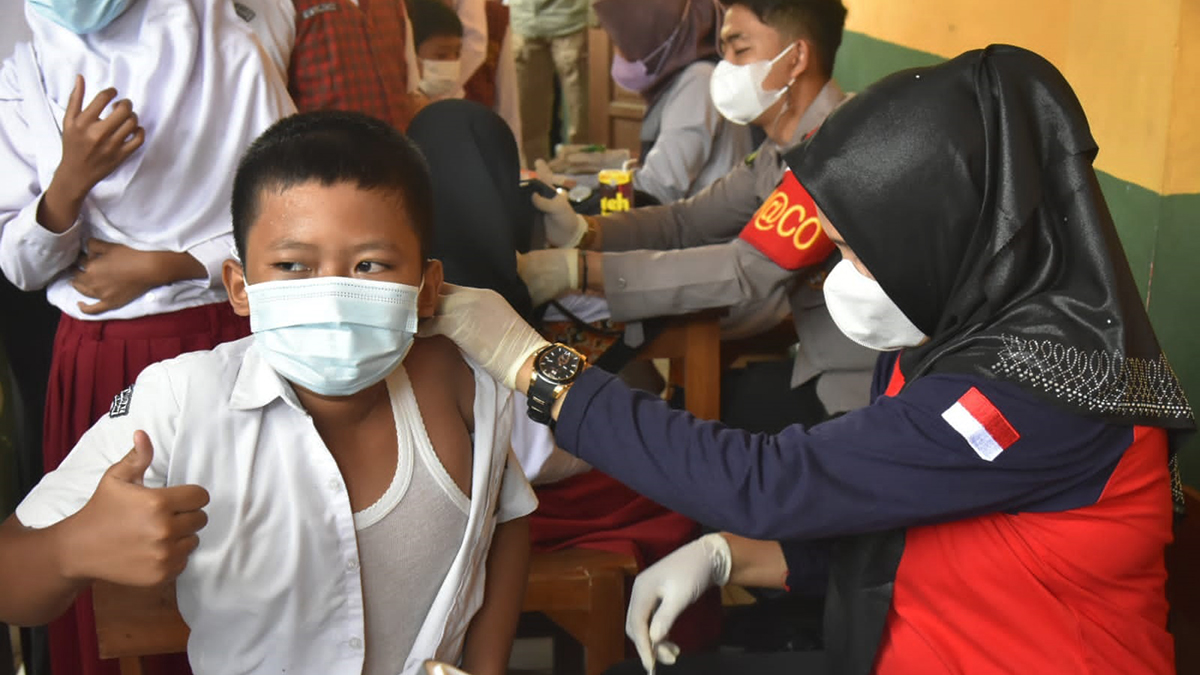 “Anak-anak kita adalah generasi yang mengisi posisi penting di tahun 2045 karena tahun 2030 kita memiliki potensi 60 persen masyarakat kita berada di usia produktif. Untuk bisa mempersiapkan SDM unggul, mau tak mau anak-anak kita harus kita jaga dari risiko terkait munculnya varian baru atau varian-varian yg nanti muncul. Yang kita lakukan salah satunya memberikan kekebalan imunitas dengan vaksin,” ujar Kapolri.