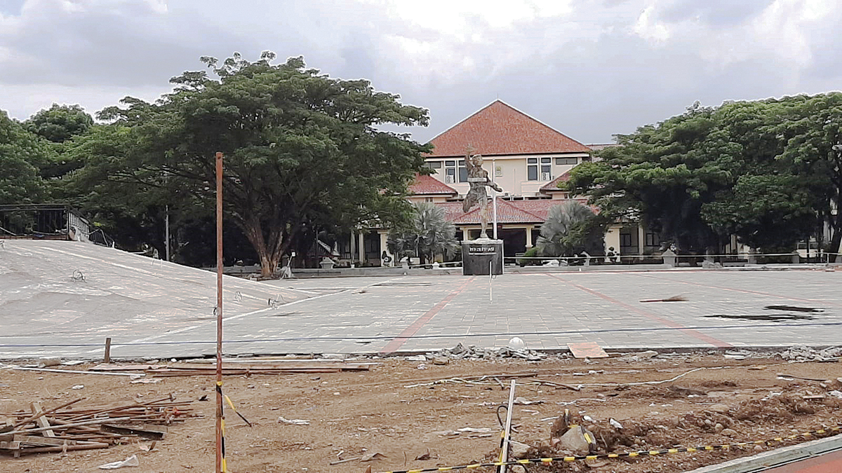 KABUPATEN CIREBON, SC- Pembangunan Alun-Alun Taman Pataraksa (ATP) dipastikan mandek. Revitalisasi ATP yang berlokasi di depan Kantor Bupati Cirebon terkendala anggaran. Pemprov Jabar maupun Pemkab Cirebon tidak lagi menganggarkan kelanjutan pembangunan ATP pada tahun 2022 ini, lantaran anggaran terkena refocusing.