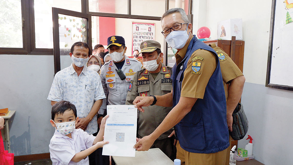 KOTA CIREBON, SC- Pemerintah Kota Cirebon menggelar vaksinasi Covid-19 anak usia 6-11 tahun di hari pertama pelaksanaan pembelajaran tatap muka (PTM) 100 persen di sejumlah sekolah dasar (SD). Vakisnasi anak usia 6-11 tahun menjadi salah satu hal yang wajib, di samping penerapan disiplin protokol kesehatan (prokes) ketat yang harus dilakukan pihak sekolah.
