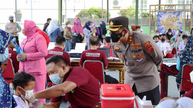 KAPOLRES MAJALENGKA aktif memantau kegiatan vaksinasi anak usia 6 sampai 11 tahun yang ditargetkan selesai pada 22 Januarai mendatang.* Foto: Abr/SC