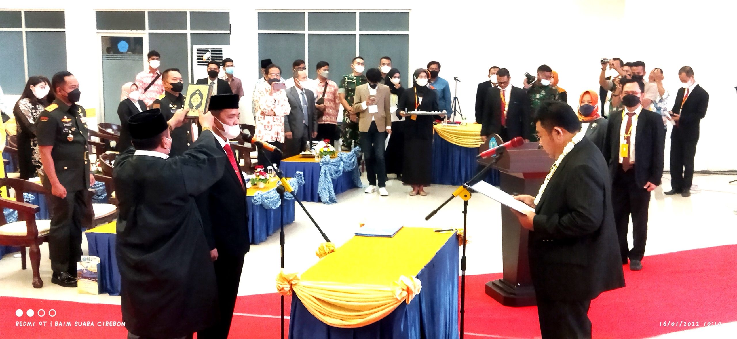 KOTA CIREBON, SC- Yayasan Pendidikan Swadaya Gunung Jati (YPSGJ) Cirebon melantik Prof. Dr. H. Mukarto Siswoyo, MSi, sebagai Rektor UGJ periode 2022-2026, pada perayaan Dies Natalis ke-61 UGJ, yang berlangsung di Auditorium UGJ Cirebon, Ahad (16/1/22).